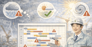 こんにちは!転職博士です。 工程管理を行う現場技術者にとって、天候は最大のライバルといっても過言ではありません。 とくに屋外が中心となる作業では、天候不良により予定が中断となったり、職人さんの手配が変更となったりと、頭を […]